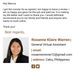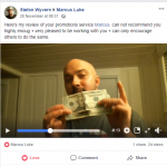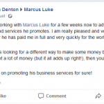 I have been working with Marcus for a few weeks now to advertise the businesses and services he promotes. I am really pleased and very happy to be able to say he has paid me in full and very quickly for the work I have done.