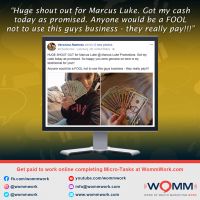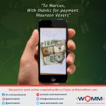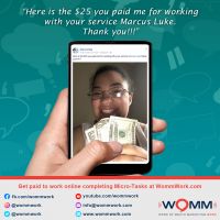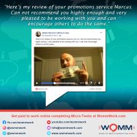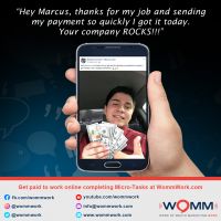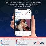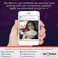 I want to thank Marcus for this wonderful opportunity. I would definitely recommend WOMM because of the work flexibility, great pay and awesome training and support. Working from home has never been easier or more enjoyable.